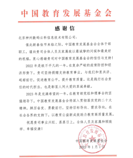 近期,evo视讯真人官网球迷屋官网收到中国教育开展基金会的感谢信,以感谢evo视讯真人官网球迷屋官网2022年在职业教育领域的贡献和实践,尤其是在全国职业院校大赛(中高职组)中对大赛顺利召开所付出的努力。